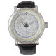Un cadeau intéressant pour le geek nerdy dans votre vie, cette montre poignet unique pour l'amateur de mathématiques dispose d'un balayage haute résolution d'une règle vintage de diapositive circulaire antique montrant diverses échelles numériques. (REMARQUE : la règle de diapositive ne fonctionne pas réellement.)