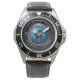 Une montre avec une image de lentille de caméra dans un style bleu avec des marques d'heure sur l'objectif. Un cadeau parfait pour un photographe professionnel ou amateur. Une petite balise d'id subtile pour ajouter des initiales ou du texte.