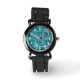 Ajoutez votre propre photo pour créer un cadeau unique de montre poignet. Photo de lumière jouant au fond d'une piscine. La couleur dominante est l'aqua plus que le bleu.