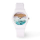 Une montre de sport moderne, branchée et cool, avec une photo de plage à l'intérieur de laquelle on peut lire des vibes de plage.