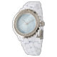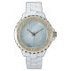 Une montre élégante au poignet avec une image d'imaginaire éthérée de dentelle blanche délicate.