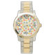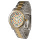 Cette montre pour hommes a un design géométrique de points en corail, or et vert sauge.