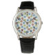 Cette montre pour hommes a un design géométrique de points bleus, verts et marrons.