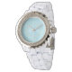 Jolie montre femme dispose Spun Sugar pastel bleu avec deux tons de confetti d'or combo et texte central personnalisable.