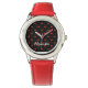 Montre Pois rouge motif et nom personnalisé sur noir
