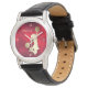 Voici la montre parfaite pour une fille ou une femme sur un peloton de soutien ! Il dispose d'une silhouette dorée brillante pom-pom girl avec poms de chambre. L'image est placée sur un arrière - plan rouge dégradé qui semble presque luisant avec la couleur. Son nom est écrit en haut à gauche, avec des numéros or correspondants aux 12, 3, 6 et 9 positions. Belle !