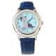 Ce mignon petit chiot noir et blanc à la frontière agite "bonjour" ou est-il juste un peu timide et se cachant derrière sa patte? de toute façon ce petit chiot chien a l'air très doux avec son petit ours en peluche bleu posé par ses pattes. Je pense que cette douce petite montre de chiot à collie agitant fait un grand cadeau pour tout gamin qui aime les mignons colons frontaliers. Cette montre élégante a facile à lire les chiffres en bleu correspondant qui semblent très bien sur la face de montre de couleur neutre. Le portrait original de chiot de ce chien collie et son peluche sont peints en aquarelle. Si vous êtes intéressé à commander un portrait d'animal de compagnie pour vous-même ou comme cadeau spécial pour quelqu'un, n'hésitez pas à m'envoyer un courriel pour plus de détails. J'ai hâte de vous "bavarder" :) Peut-être verrez-vous votre animal de compagnie bien-aimé sur un excellent produit zazzle.
