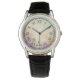 Montre pour homme à fleurs aquarelles personnalisée – Bracelet en cuir de style antique | Cadeau de mariage pour le marié, le témoin ou le père.