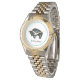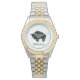 Cette montre à deux tons, classique et élégante, est présentée avec un imprimé d'art natif représentant un buffle. Customisez cet objet ou achetez tel quel. Image stock vecteezy.com