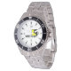 Le texte What's Up ? et le dessin d'une fenêtre jaune aux lumières vives et d'une silhouette à demi-visage de l'arrière du rideau. Un oeil brillant blanc vous regarde. La montre-bracelet amusante pour le plaisir et la bonne humeur.