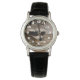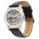 Une montre avec la photo d'un joli et curieux raton laveur reposant son visage sur une rondelle en bois. Adorable.