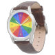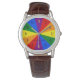 Offrez cette montre à votre ami avec cette version du drapeau LBGTQ. Montrez que nous sommes tous humains et que nous devrions être fiers de ce que nous sommes. Terre des Libres, Maison des Gais ! Les rayures sont les six couleurs de l'arc-en-ciel. Les rayures sont organisées en starburst. Ils rayonnent vers l'extérieur. Deux fois six, chaque heure par couleur. Police gothique sans serif ordinaire. Marque NUMÉRIQUE.
