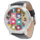 Cette montre pour hommes a un design moderne du milieu du siècle des carrés avec des rectangles arrondis avec antenne dans des couleurs modernes du milieu du siècle. Voulez-vous le même design dans des couleurs différentes? Message-moi.