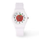 Jolie pomme rouge avec une feuille verte, est imprimée sur le style de montre de votre choix. De grands nombres noirs sont imprimés sur le visage de la montre. C'est une excellente façon de remercier un enseignant. Il y a des produits correspondants dans ce magasin. Merci pour faire du shopping à CherylsArt sur Zazzle.