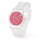 Montre Red Pink Glitter Clear Strap Women's Watch