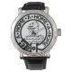 Montre classique audacieuse avec grand Home / Hume Crest sur le visage. Bracelet en cuir noir.