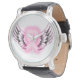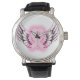 Montre Regarder les ailes du coeur rose en ruban/noir