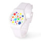 Un motif audacieux avec des taches arc-en-ciel inégales sur le blanc.