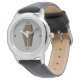 Cette magnifique montre est dotée d'un cercueil déplaisant en bois avec bordure dorée. Le couvercle du cercueil est légèrement ouvert et ne révèle que l'obscurité à l'intérieur. La plaque d'or à l'avant du cercueil contient un éffrayant texte noir qui indique RIP, ne donnant aucune idée de qui ou de ce qui pourrait se trouver à l'intérieur. Ce cercueil amusant mais sinistre est idéal pour Halloween. L'arrière - plan gris sombre agit pour attirer l'oeil de l'observateur vers le cercueil du malheur.