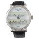 Cette montre Profitez de votre Jour Joyeux Oiseau! fait un cadeau de retraite unique et garde le saké pour votre mari, un ami spécial, et toute personne qui aime les oiseaux et l'observation des oiseaux. D'une peinture d'aquarelle originale sur les oies du Canada à la réserve humide de Slimbridge. Les oies sont réputées pour leurs troupeaux en forme de V qui mettent l'accent sur le ciel de printemps et d'automne et sont l'une de nos espèces de sauvagine les plus abondantes en Amérique du Nord et au Royaume-Uni. Peut être personnalisé sur le devant avec le nom du destinataire et vous pouvez modifier le message.