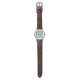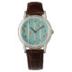 Une montre avec une illustration de bouleaux avec des orangers assis sur leurs branches. Arrière - plan vert rétro.