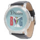 Dream big text illustration with colorful air balloon and cloudy decoration. C'est possible to change the background color and to add different one to the design with your choice.