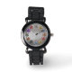 Pierres grasses et strass de toutes les couleurs (ce sont des effets IMPRIMÉS) font honneur à cette montre amusante, flashy, féminine. Bijoux au lieu de chiffres !