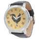 Belle illustration vintage de Rooster pour le Nouvel An Chinois 2017 ou Anniversaire (signe chinois du zodiaque) cadeau sur montre personnalisable avec numéros romains. Vous pouvez facilement changer la couleur arrière - plan (ici dégradé doré) et la taille de la conception en cliquant sur le bouton personnalisable ou personnalisable. Correspondance Rooster Année Panier, invitation à la fête, Carte de voeux, carte postale, affranchissement et autres produits...