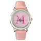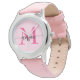 Montre Rose vif moderne monogramme de fille avec prénom e