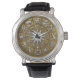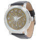 Montre vintage bracelet en cuir noir avec l'image d'une roue en laiton et en argent astrologie. Voir bouton correspondant, charme, boucles d'oreilles, grand porte - clé en métal de qualité supérieure ronde, porte - clé en métal pivotant et collier. Voir l'ensemble de la collection Gemstones & Medallions Watch dans la section ACCESSORIES.