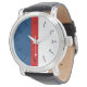 Soutenez le rouge, le blanc et le bleu dans tout ce que vous faites et portez, y compris cette superbe montre. Avec un visage avec des chiffres noirs classiques sur un arrière - plan de rayures verticales rouges, blanches et bleues, cette montre est la définition du style.