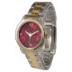Montre de couleur or et argent avec l'image d'un rubis rouge profond éblouissant. Face d'horloge en or en option. Voir bouton rond correspondant, charme rond, boucles d'oreilles, grand porte - clé en métal de qualité supérieure ronde, porte - clé acrylique rond double face, porte - clé en métal tourbillon et collier rond. Voir l'ensemble de la collection Gemstones & Medallions Watch dans la section ACCESSORIES.