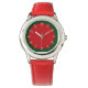 Décorez votre poignet avec style avec cette montre avec un visage rouge et vert bicolore et des chiffres blancs.
