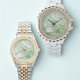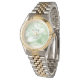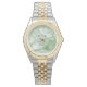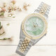 Featuring a refined sage green watercolor dial accented with warm gold details, this design is paired with a sophisticated silver and gold two-tone bracelet for a look that is masculine, balanced, and enduring. The harmonious color palette reflects calm confidence and timeless elegance—perfect for weddings, nikah ceremonies, and elegant his and hers gifting.