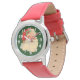 Montre rouge en acier inoxydable pour enfant avec une image vintage de vieux St. Nick jolis sur le vert et face en option en argent horloge. Voir la collection de montres bracelets de Noël dans la catégorie ACCESSOIRES de la section VACANCES.