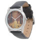 ... Montre avec bracelet en cuir noir protecteur de couronne pour hommes