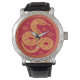 Célébrez le Nouvel An chinois avec cette superbe montre en zodiaque de serpent rouge et or. Doté d'un design élégant de serpent, entouré de motifs nuageux complexes et d'une bordure géométrique traditionnelle, ce garde-temps combine magnifiquement l'art culturel et la fonctionnalité moderne. La palette audacieuse de couleurs rouge et or respire la fête et le raffinement, ce qui en fait un cadeau idéal pour honorer l'Année du serpent ou un cadeau réfléchi. Le bracelet en cuir noir élégant vient compléter le visage vibrant de la montre, assurant confort et style.