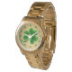 Montre en or surdimensionnée Unisex avec l'image d'un shamrock émeraude sur or brossé et une face émeraude. Voir la fiche de sculpture en acrylique, le charme rond, le porte - clé de sculpture en acrylique et le collier rond Voir toute la collection St. Patrick's Day Watch sous la catégorie ACCESSOIRES dans la section VACANCES.