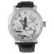 Skeleton Warrior watch : Cet art de mort vintage est certainement très unique pour son jour, appelé la question de quarantaine vers 1858, il ressemble certainement plus à une comédie d'horreur d'action moderne poster art qu'à quelque chose des années 1800 ici vous avez un squelette guerrier mort brandissant une épée flamboyante et bouclier cercueil de cercueil à plusieurs femmes sur un rivage. Cela fait un visage de montre très unique.