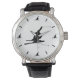 Cette montre unique présente des silhouettes noires d'un skieur de descente sur un arrière - plan blanc. La couleur arrière - plan peut être facilement changée en couleur de votre choix en cliquant sur Personnaliser.