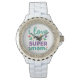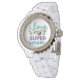 Montre Sparkling Diamond Bezel Super Mom White Link Watch