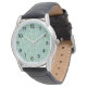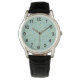 Cette montre pour hommes a un design Boho de spirales se chevauchant en bleu et vert sur un champ de blanc.
