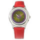 Ce visage de montre est conçu pour vous donner l'illusion du mouvement. Les couleurs sont très contrastées et on dirait que le visage tourne. Toutes les couleurs sont métalliques (or, rouge, bleu et violet) sur un champ noir. Aucune heure n'est marquée sur le visage. Disponible dans tous les styles et toutes les couleurs.