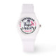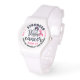 Montre en Silicon Blanc Sportif pour femmes Avec un groupe en silicone confortable, cette montre est parfaite pour le guerrier de l'entraînement en vous ! Créez une montre qui vous ressemble en personnalisant le cadran avec vos photos, images et textes. Montre au poignet pour femmes Matériel : Bracelet : Coque en silicone Dimensions : Face : 1,18" de diamètre Bracelet : 9,5" x 0,79" de Coque : 1,57" de diamètre Poids : 0,082 lb analogique à 3 mains Japan Quartz® Impression personnalisée en couleur sur le visage Disponible en 2 couleurs - Boîtier blanc et rose 1 an fabricants garantie limitée Batterie incluse Ce produit est recommandé pour les 13 ans et plus