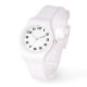 Une couleur claire et solide "Blanc" Femme Sporty White Silicon Watch. Ce blanc est blanc pur. Cliquez sur "Personnaliser" pour changer de couleur ou pour ajouter un motif ou un design. Code hexadécimal du produit : #ffffff