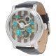 Montre Steampunk Clock and Turquoise Roses on Striped