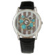 Montre Steampunk Clock and Turquoise Roses on Striped