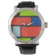 Montre Style Mondrian Orange Green Blue Fuzzy Abstrait