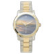 Montre en or et en argent avec des vagues qui roulent sur le rivage pendant cette heure d'or lever par le Pensacola Beach Gulf Pier à Pensacola Beach, Floride, États-Unis. Vous recherchez plus de produits ? Visitez mon magasin : http://www.zazzle.com/timelessmomentsphtgy Photo prise par Jennifer White with Timeless Moments Photography. Toutes les images sont protégées par des droits d'auteur.