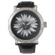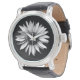 Cette élégante montre en noir et blanc présente une simple image en noir et blanc d'un tournesol. Un joli ajout à n'importe quelle armoire.